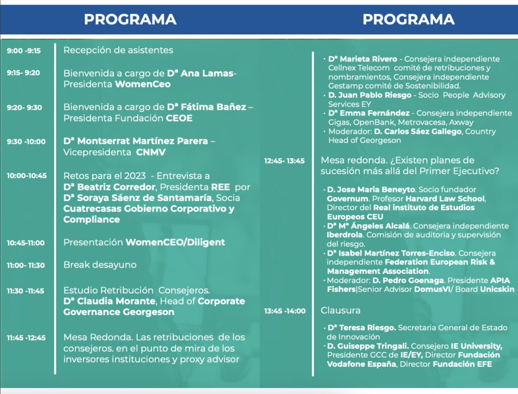 Arrancamos el año 2023 con la X Jornada de Buen Gobierno Corporativo: el día 26 de enero en la sede de la CEOE (Diego de León ,50) en horario de 09:00- 14:00.